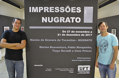 Em sua primeira exposição artística, o Núcleo de Gravura do Tocantins – Nugrato, apresenta vinte gravuras dos artistas Marina Boaventura, Pablo Marquinho, Tiago Beraldi e Vone Petson. Para essa exposição, o Nugrato escolheu a milenar técnica de gravação em madeira: a xilogravura. As obras estão expostas na Universidade Federal do Tocantins, no bloco IV, do Câmpus de Palmas, a partir desta segunda-feira (27) até o dia 21 de dezembro. A exposição faz parte do programa Corredor Cultural, organizado pela Pró-reitoria de Extensão, Cultura e Assuntos Comunitários (Proex).